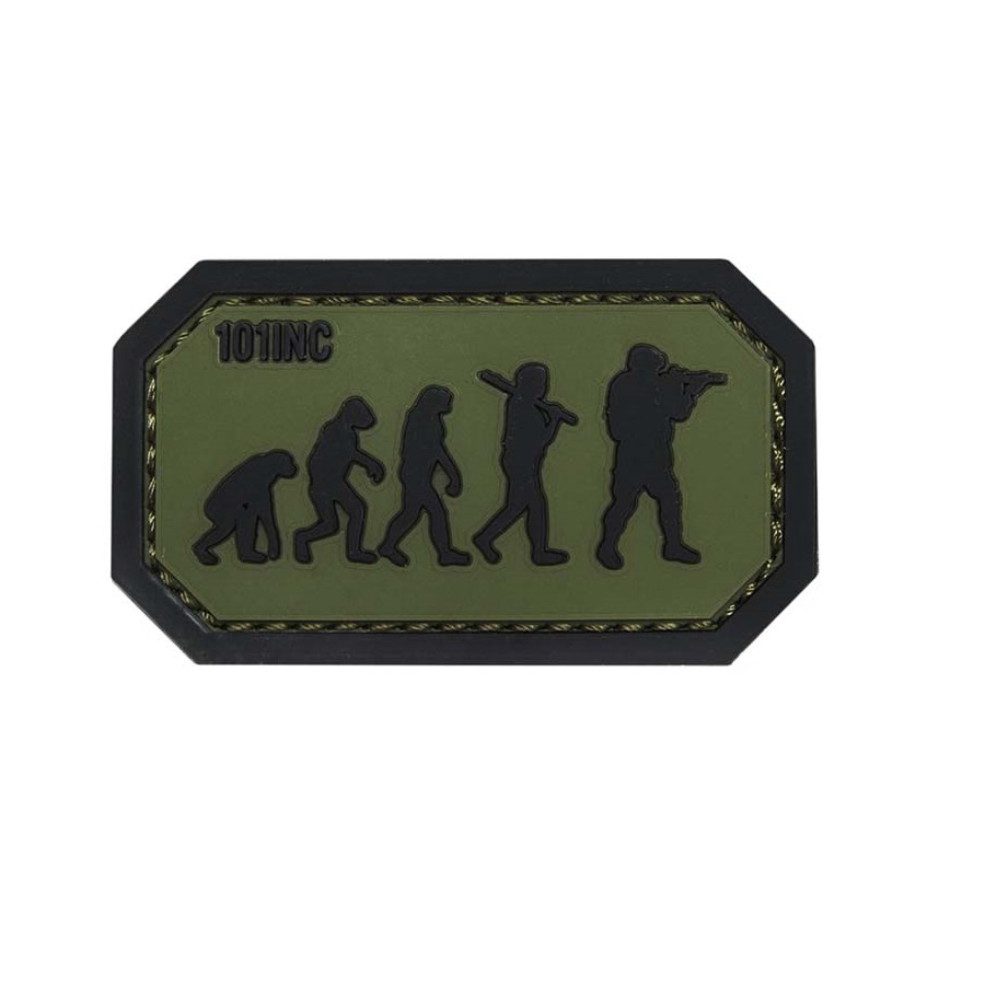 Écusson 3D en plastique avec fermeture velcro, de couleur vert et noir.