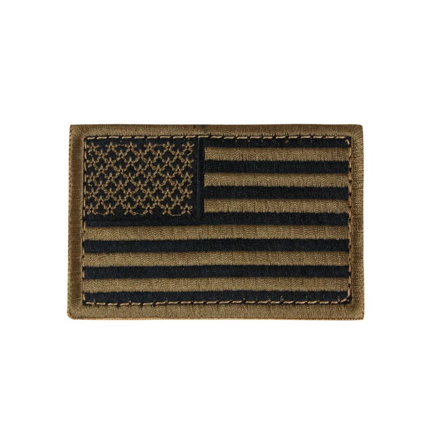 Écusson drapeau américain. Modèle standard, couleurs de combat Desert Tan. Dimensions de l'écusson : 8 x 5 cm. Plus d'informations
