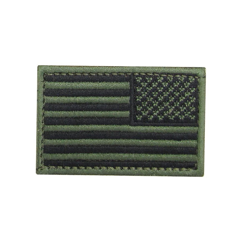 Écusson drapeau américain. Modèle inversé, couleurs vert militaire. Dimensions de l'écusson : 8 x 5 cm Plus d'informations