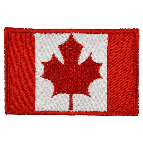 Écusson représentant le drapeau canadien. Dimensions : environ 50 x 75 mm. Plus d'informations
