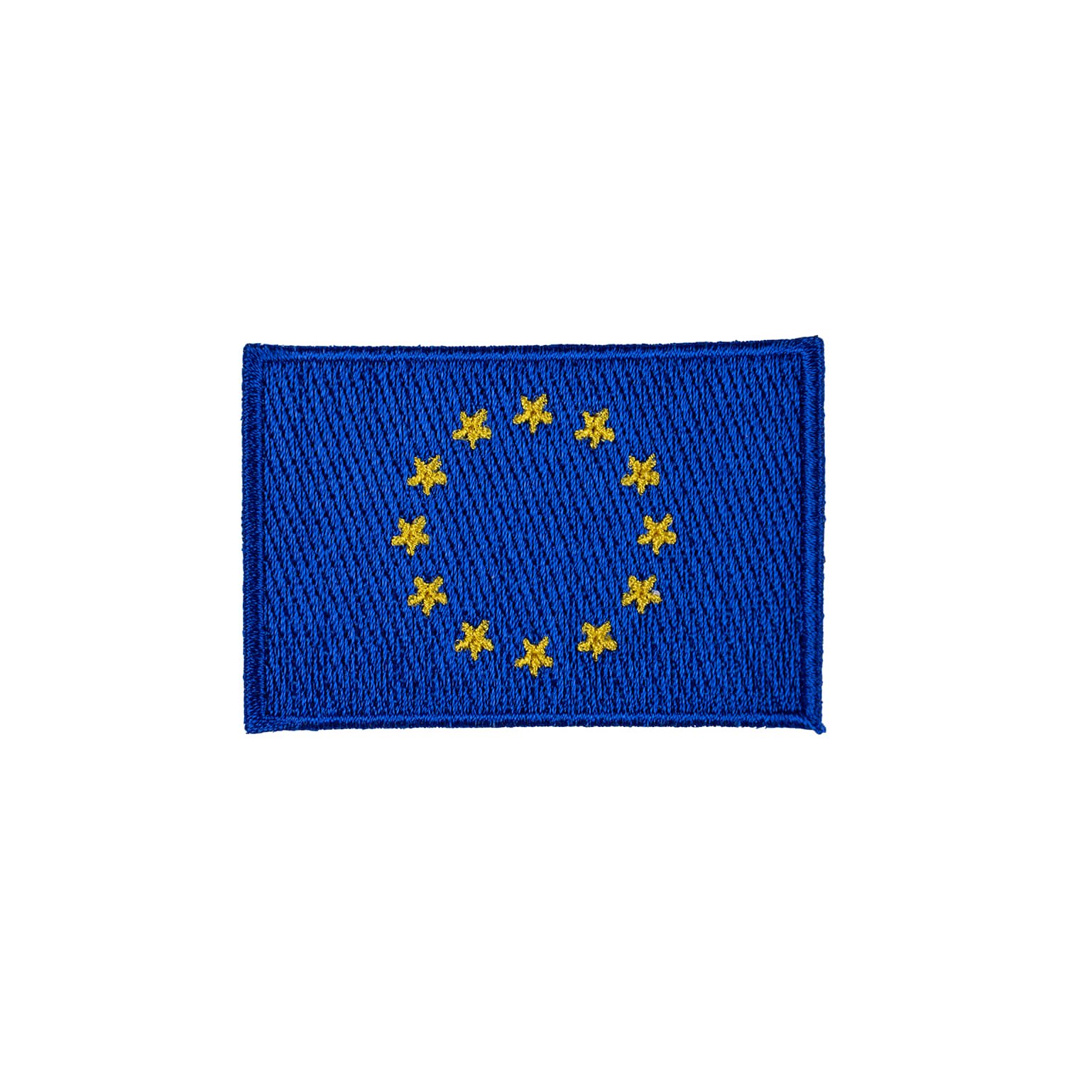 Écusson textile représentant le drapeau de l'Union européenne, dimensions approximatives : 6,5 x 4 cm.