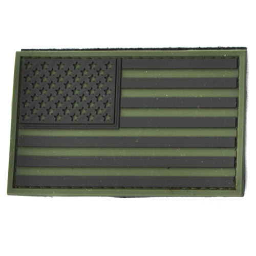 Écusson en plastique représentant le drapeau américain. Couleur verte. Dimensions : environ 8 x 5 cm. Dos avec velcro. Plus d'informations