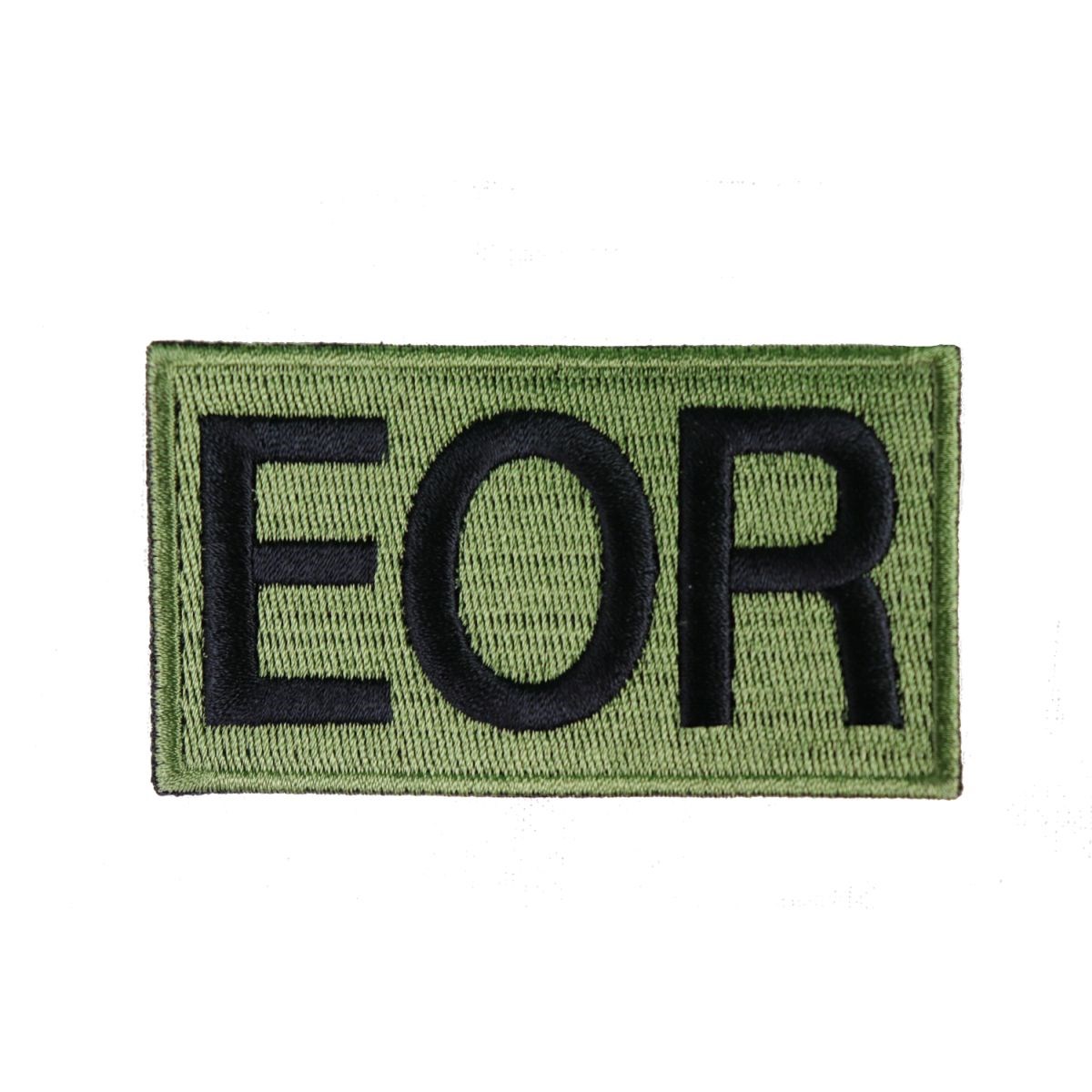 Écusson classique avec broderie de haute qualité - inscription EOR en noir sur fond vert. EOR est l'abréviation de Explosive Ordnance Recognition (Reconnaissance). Dimensions : environ 80 x 45 mm.