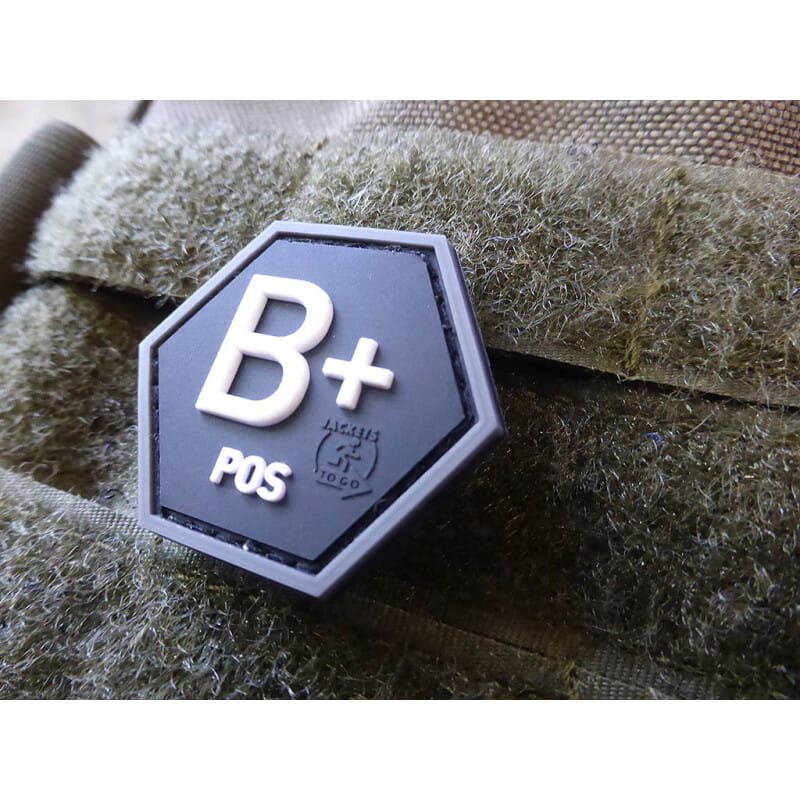 JACKETS TO GO écusson hexagonal sang B POS plastique NOIR SWAT