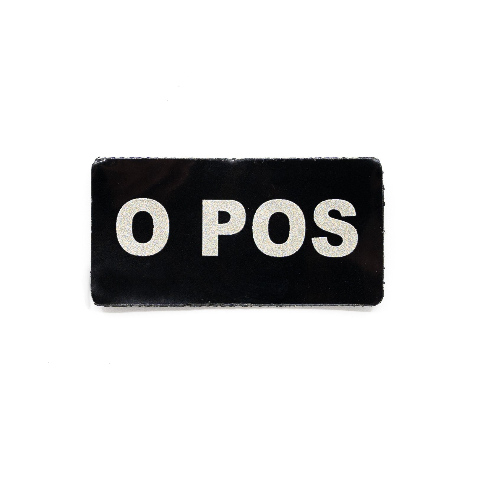 Écusson avec groupe sanguin à fermeture velcro. Visible dans le spectre infrarouge (IR). Dimensions : environ 5 x 2,5 cm.