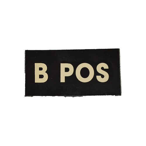 Écusson avec groupe sanguin à fermeture velcro. Visible dans le spectre infrarouge (IR). Dimensions : 5 x 2,5 cm.