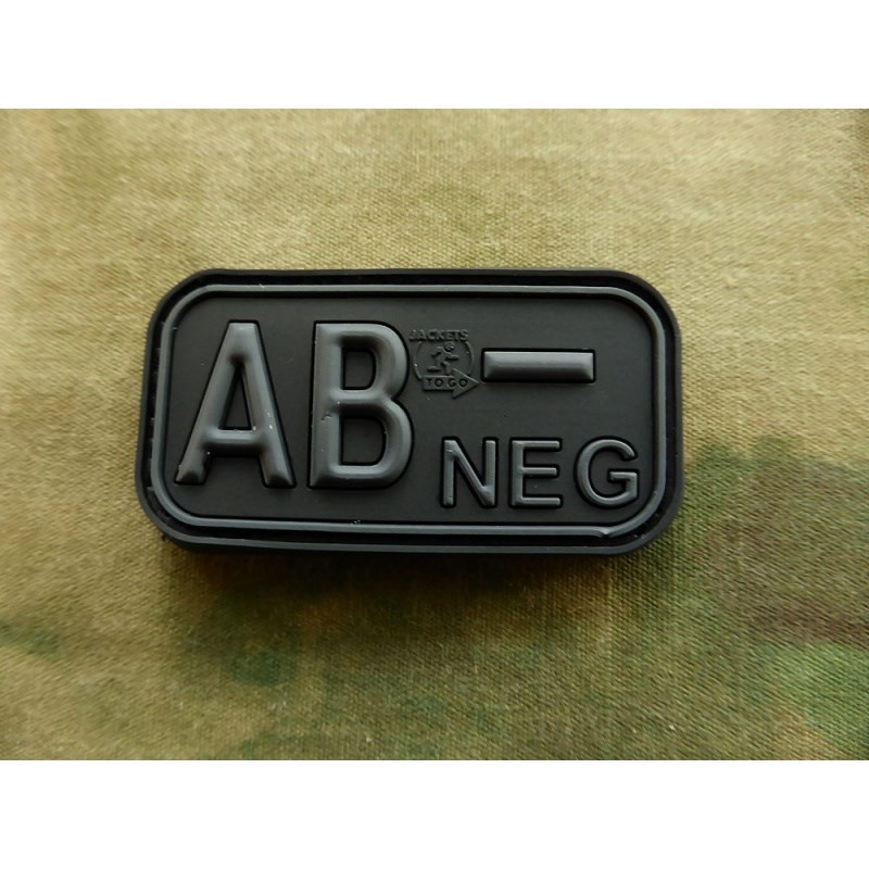 Écusson en plastique indiquant le groupe sanguin. Dimensions : environ 5 x 2,5 cm, avec velcro au dos.