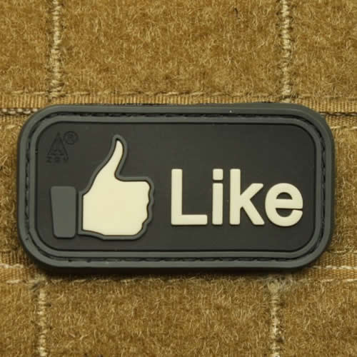 Écusson en plastique avec le motif « LIKE ». Dimensions : environ 5 x 2,5 cm, avec velcro au dos.