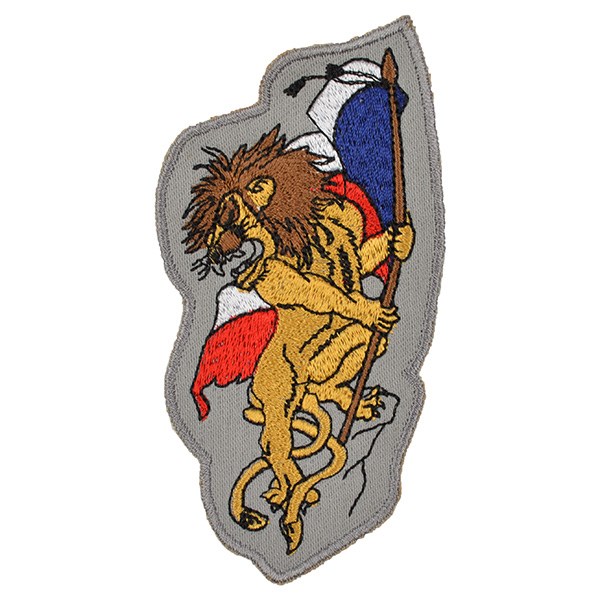 Écusson textile représentant un lion et le drapeau de la République tchèque, dimensions : environ 10,5 x 5,5 cm.