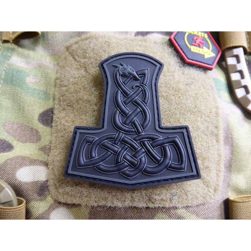 Écusson en plastique représentant le marteau de Thor (arme mythique du dieu nordique) sur velcro.