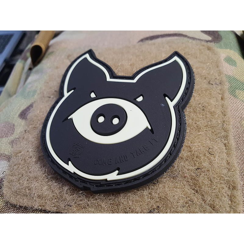 Le motif principal du patch est une tête de cochon, avec l'inscription « COME AND TAKE IT » (venez le prendre) dans la partie inférieure. La version Glow in the Dark = après avoir été éclairée, la partie claire brille dans
