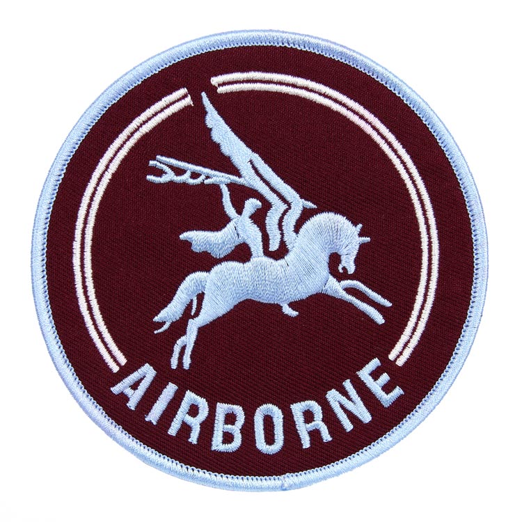 Pégase, le cheval ailé, trouve son origine dans la mythologie grecque. Pendant la Seconde Guerre mondiale (en 1941), le cheval ailé et son cavalier Bellérophon ont été adoptés comme symbole et ont commencé à porter cet insigne sur leur manche. La symbolique est assez claire : un guerrier « arrivant » au combat depuis les airs, tout comme l'aviation britannique. Le Pégase bleu clair avec son cavalier est représenté sur un fond marron (rouge-brun).