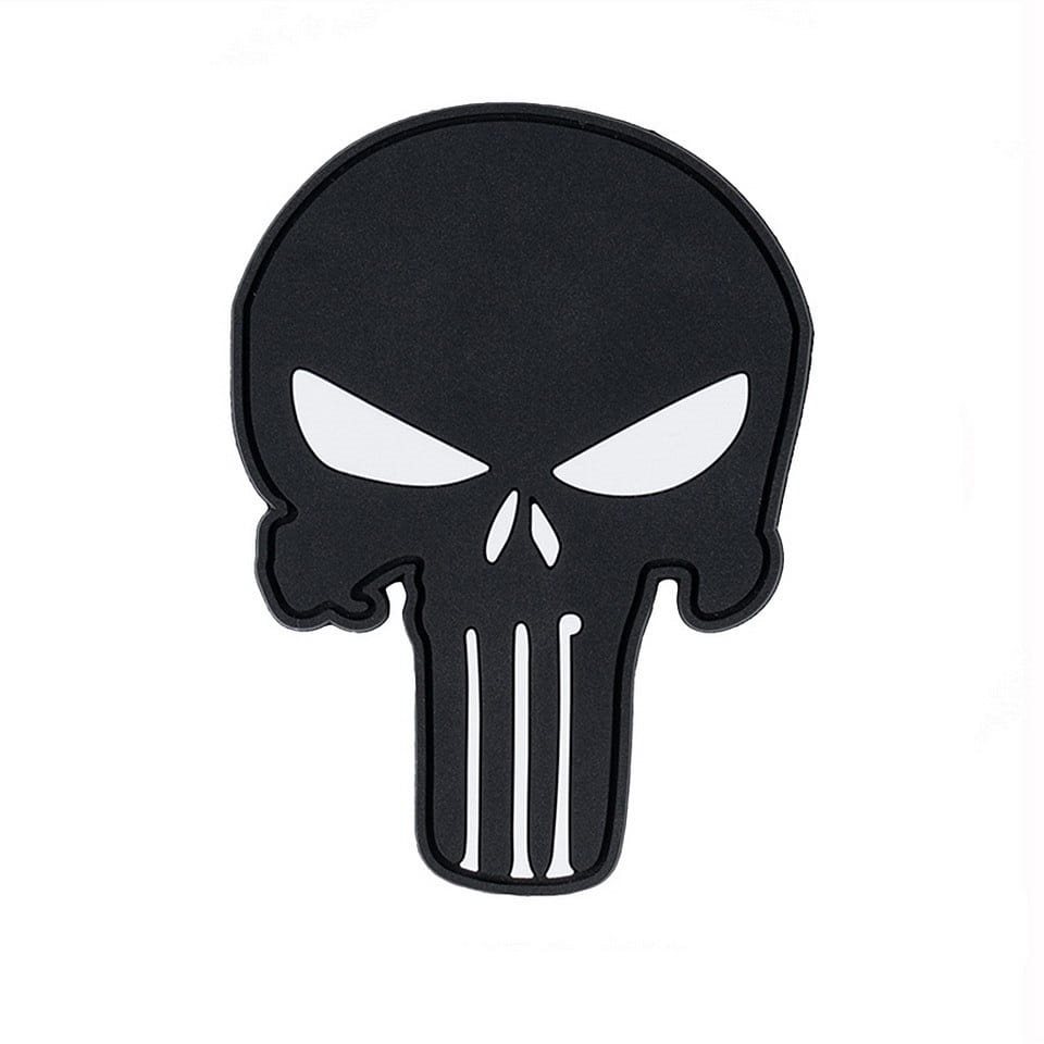Écusson en plastique avec velcro en forme de crâne. Matériau : PVC. Dimensions : environ 6,5 x 8,8 cm.