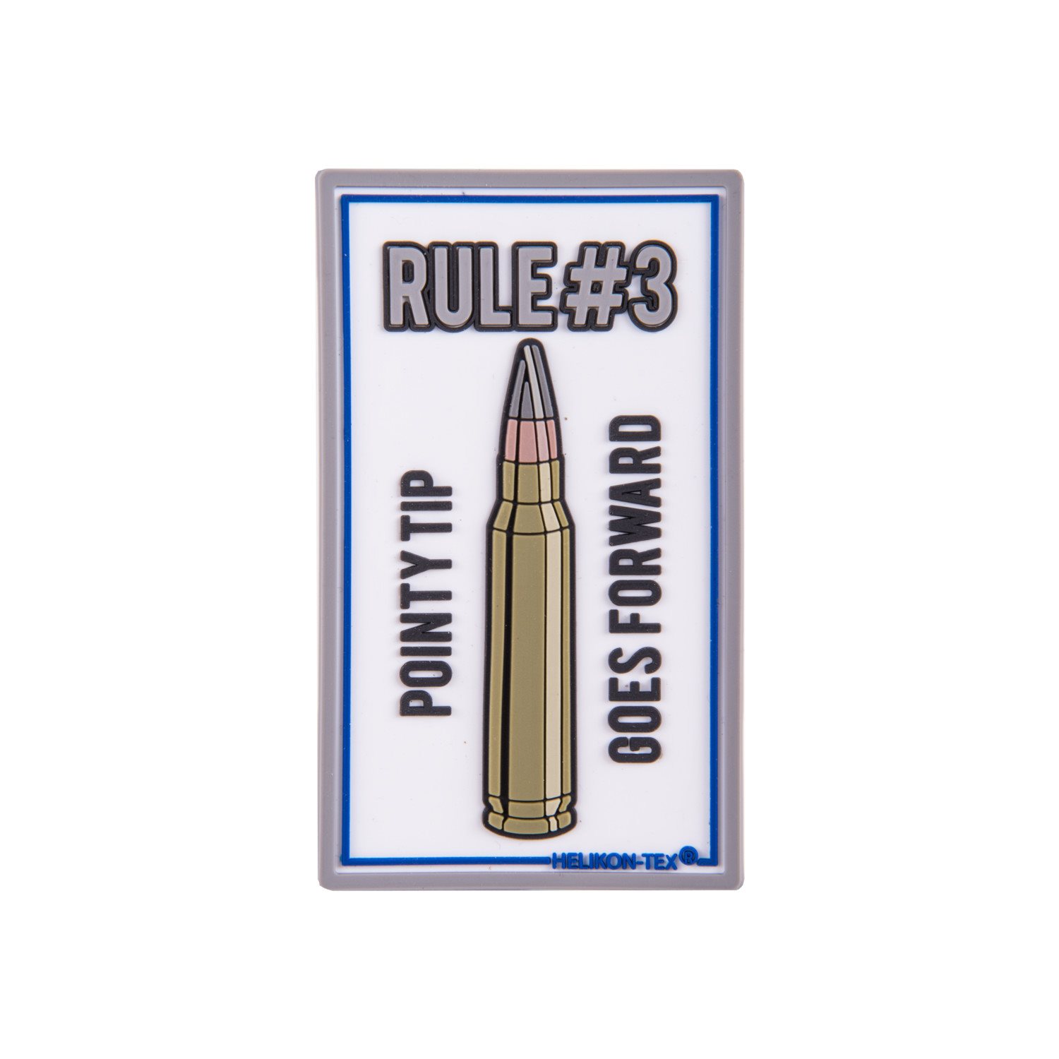 Écusson en plastique à fermeture velcro avec l'inscription RULE#3 POINTY TIP GOES FORWARD.