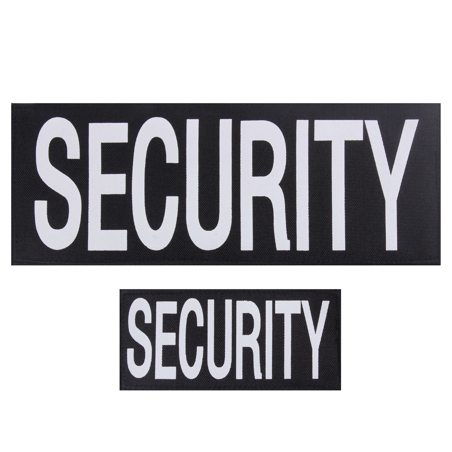 Lot de deux écussons avec inscription SECURITY. Le petit écusson 60 x 145 mm convient pour le devant. Le grand écusson 100 x 270 mm convient pour le dos. Les deux écussons sont à fixation velcro.