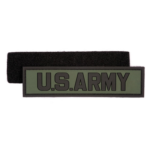 Écusson 3D en plastique avec l'inscription « U.S. ARMY ». Dimensions : environ 11 x 3 cm. Velcro au dos.