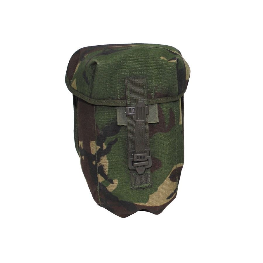 Étui d'origine pour gourde britannique en plastique avec bec verseur, motif camouflage DPM. Article d'occasion provenant d'une vente de surplus de l'armée britannique.