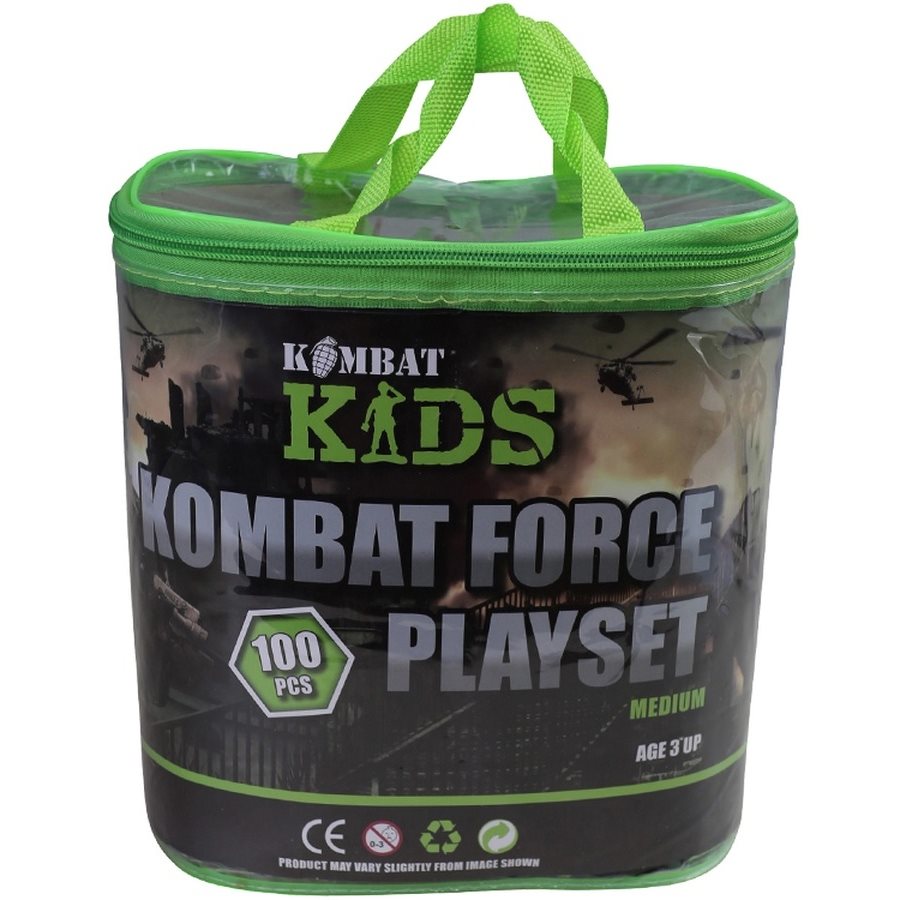 Modèles en plastique de soldats, sacs de sable, bâtiments, canons, chars, etc. Les 100 pièces sont rangées dans un sac de transport à fermeture éclair. Convient aux enfants à partir de 3 ans. Plus d'informations