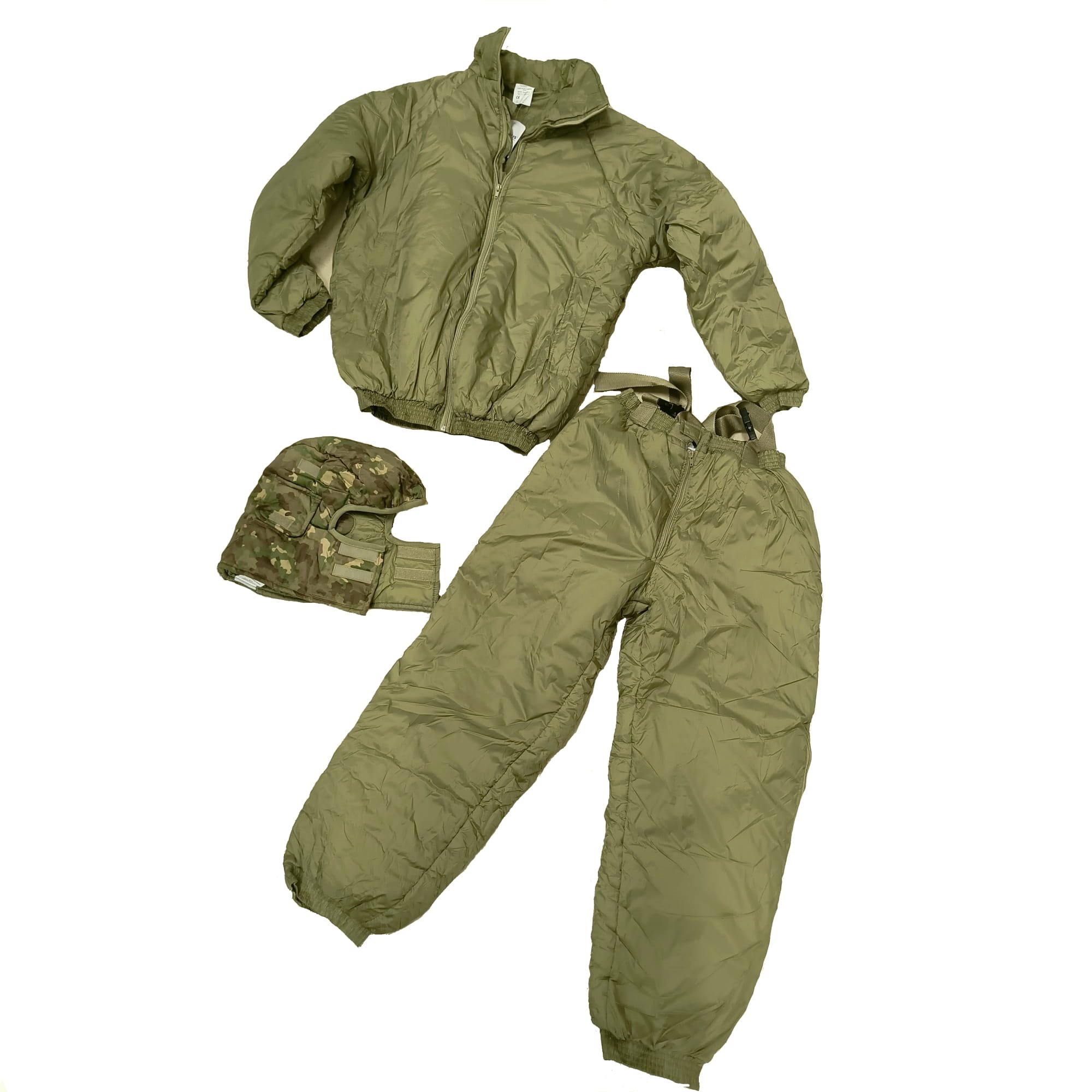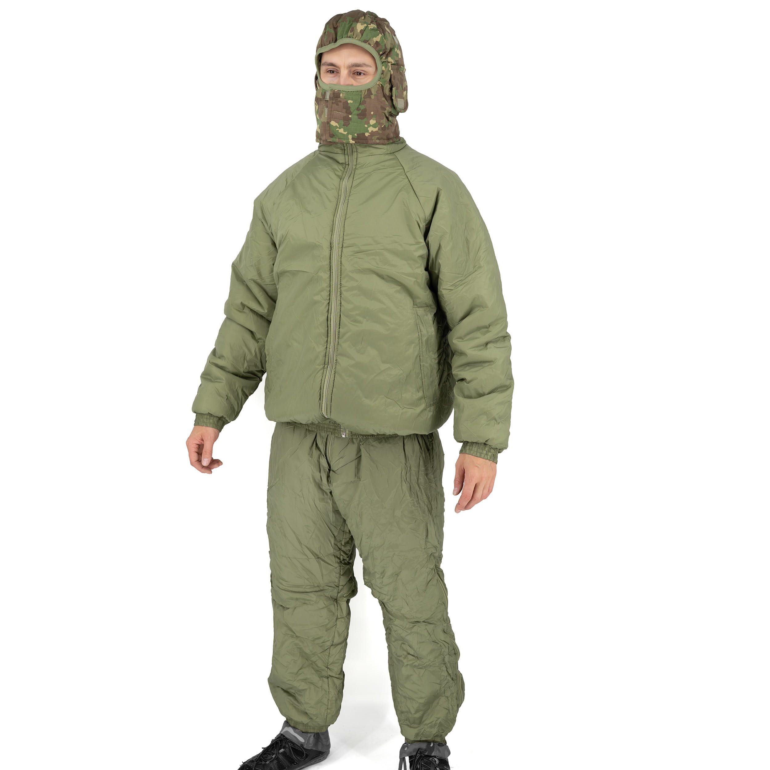 Cet ensemble complet pour temps froid comprend une veste et un pantalon thermiques, ainsi qu'une capuche/cagoule camouflée. Plus d'informations