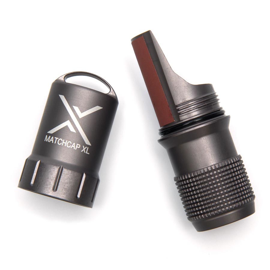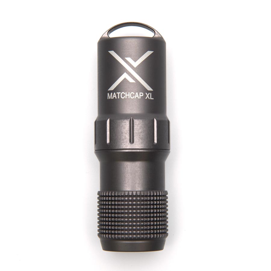 Le boîtier MATCHCAP™ est un étui à allumettes pratiquement indestructible de la société EXOTAC. Grâce aux grattoirs en phosphore rouge intégrés sur la face arrière couverte de l'étui, vous avez à portée de main la solution aux problèmes de transport et surtout d'utilisation des allumettes par tous les temps. Vos allumettes ne seront plus jamais mouillées. L'étui XL peut contenir non seulement des allumettes, mais aussi un briquet.