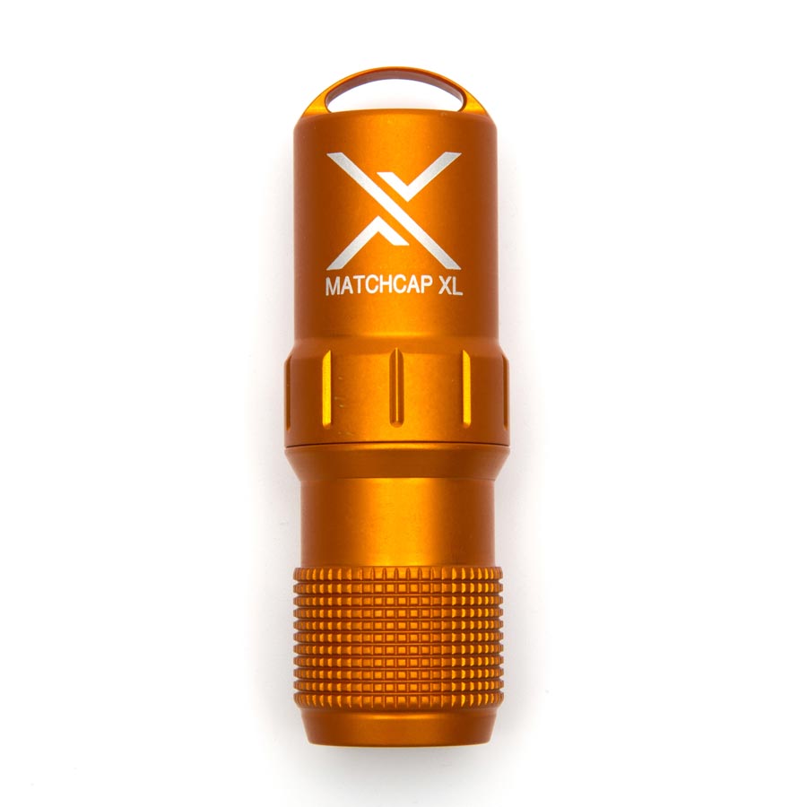 Le boîtier MATCHCAP™ est un étui à allumettes pratiquement indestructible de la société EXOTAC. Grâce aux grattoirs en phosphore rouge intégrés sur la face arrière couverte de l'étui, vous avez à portée de main la solution aux problèmes de transport et surtout d'utilisation des allumettes par tous les temps. Vos allumettes ne seront plus jamais mouillées. L'étui XL peut contenir non seulement des allumettes, mais aussi un briquet.