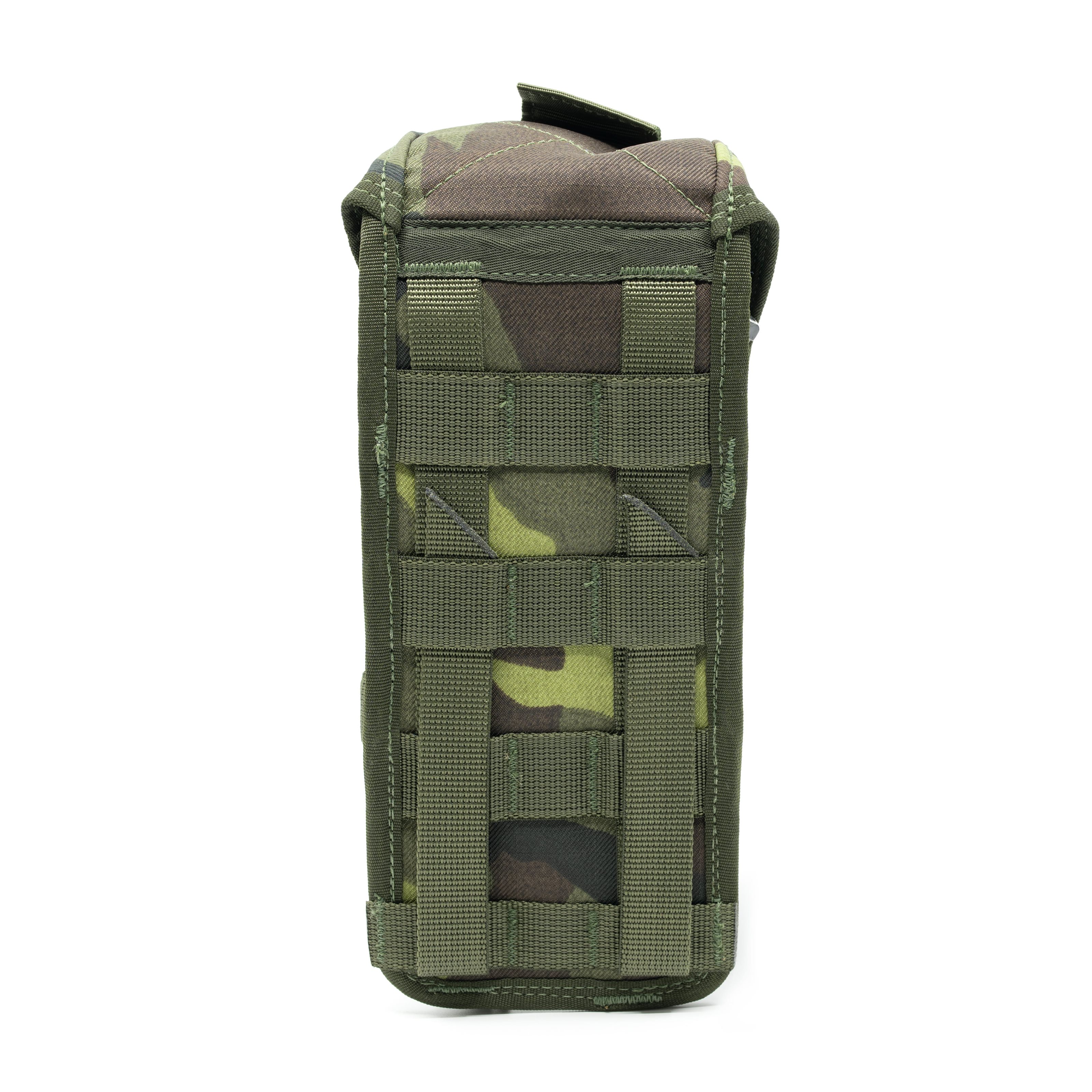 La pochette se ferme à l'aide d'un rabat muni d'une boucle Fastex et d'une bande Velcro. Pour une manipulation silencieuse, le velcro peut être désactivé à l'aide d'une contre-pièce située à l'intérieur du rabat. Les chargeurs sont rangés les uns derrière les autres dans la pochette et sont séparés par une cloison qui empêche qu'ils ne s'entrechoquent et ne fassent du bruit. Deux sangles verticales et des boucles à enfiler permettent de la fixer à un gilet, une ceinture ou toute autre plateforme.