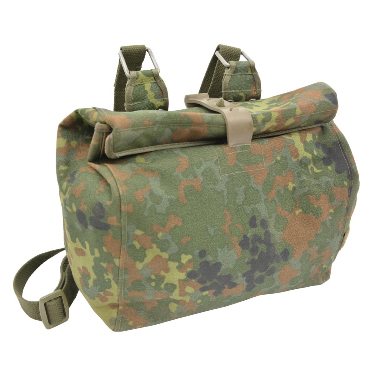 Étui d'origine provenant de l'équipement de l'armée allemande (Bundeswehr), destiné au rangement d'un masque à gaz. Le motif de camouflage FLECKTARN assure une discrétion optimale dans les zones boisées et mixtes.