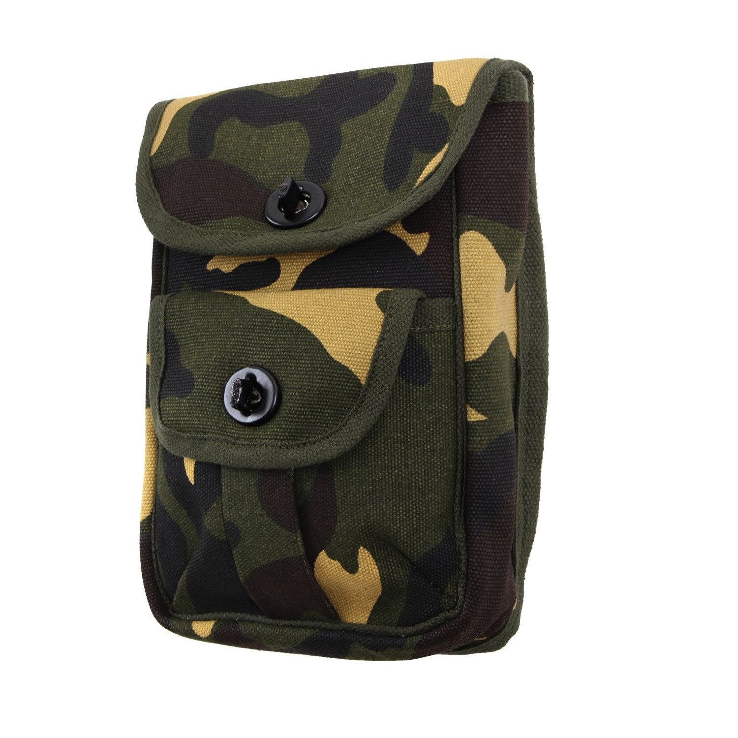 Étui en toile de coton épaisse avec deux poches. Fermeture à l'aide de fermoirs métalliques. Une boucle à l'arrière permet de l'attacher à la ceinture.