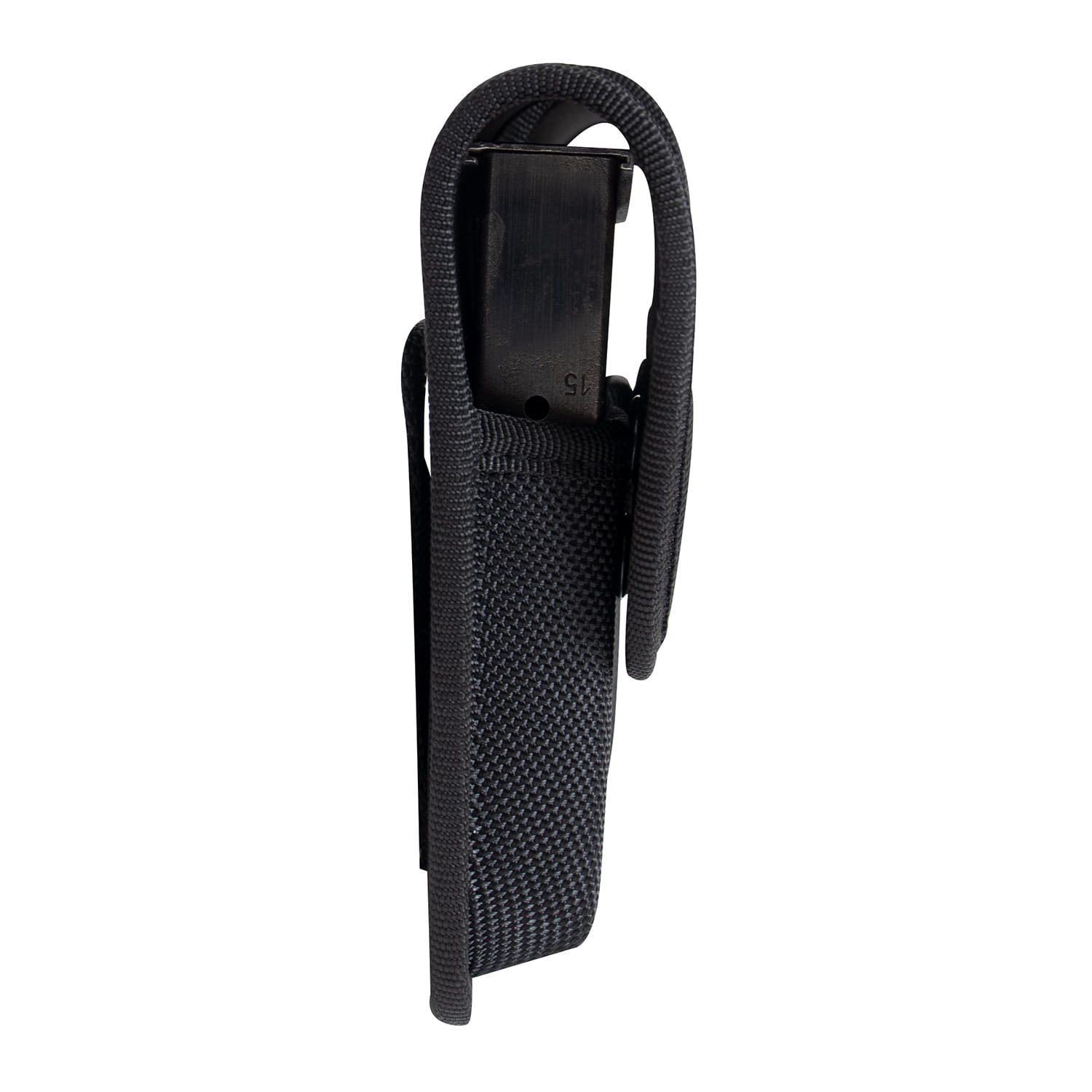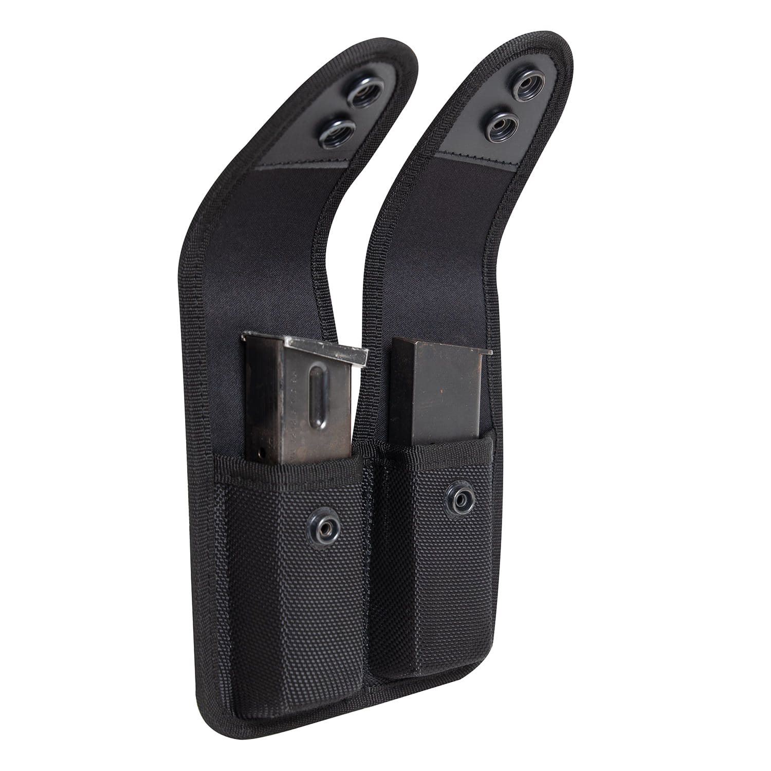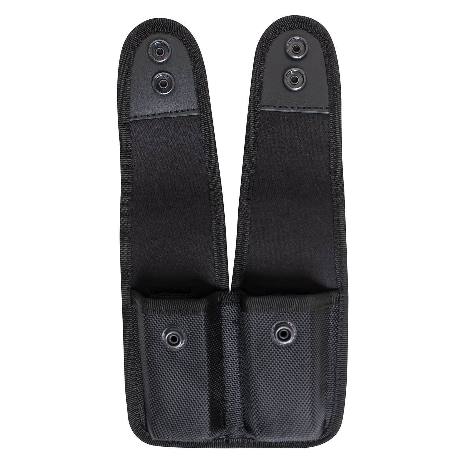 Étui de ceinture pour 2 chargeurs de pistolet. Fermeture à bouton-pression. Dimensions : environ 15,2 x 12,7 cm.