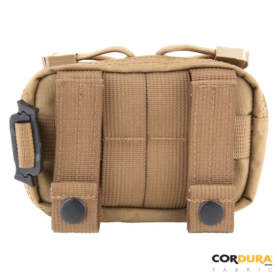 Petit étui conçu principalement pour transporter de petits appareils électroniques. La poche avant, idéale pour un téléphone portable, se ferme à l'aide d'un rabat à velcro, est renforcée à l'extérieur par du plastique et doublée de molleton pour réduire les risques de rayures. La poche principale se ferme à l'aide d'une fermeture éclair asymétrique à deux curseurs, elle est rembourrée et doublée. Ses dimensions permettent de la remplir de manière optimale. les risques de rayures. La poche principale se ferme à l'aide d'une fermeture éclair asymétrique à deux curseurs, elle est rembourrée et doublée. Ses dimensions permettent d'y ranger un appareil photo numérique compact, un GPS, etc. Elle comprend en outre deux compartiments pouvant accueillir par exemple des cartes mémoire, des piles de rechange ou un chiffon de nettoyage. L'étui est conçu pour être fixé à la ceinture, mais peut également être utilisé sur des plateformes compatibles PALS/MOLLE ou suspendu verticalement à un support approprié.