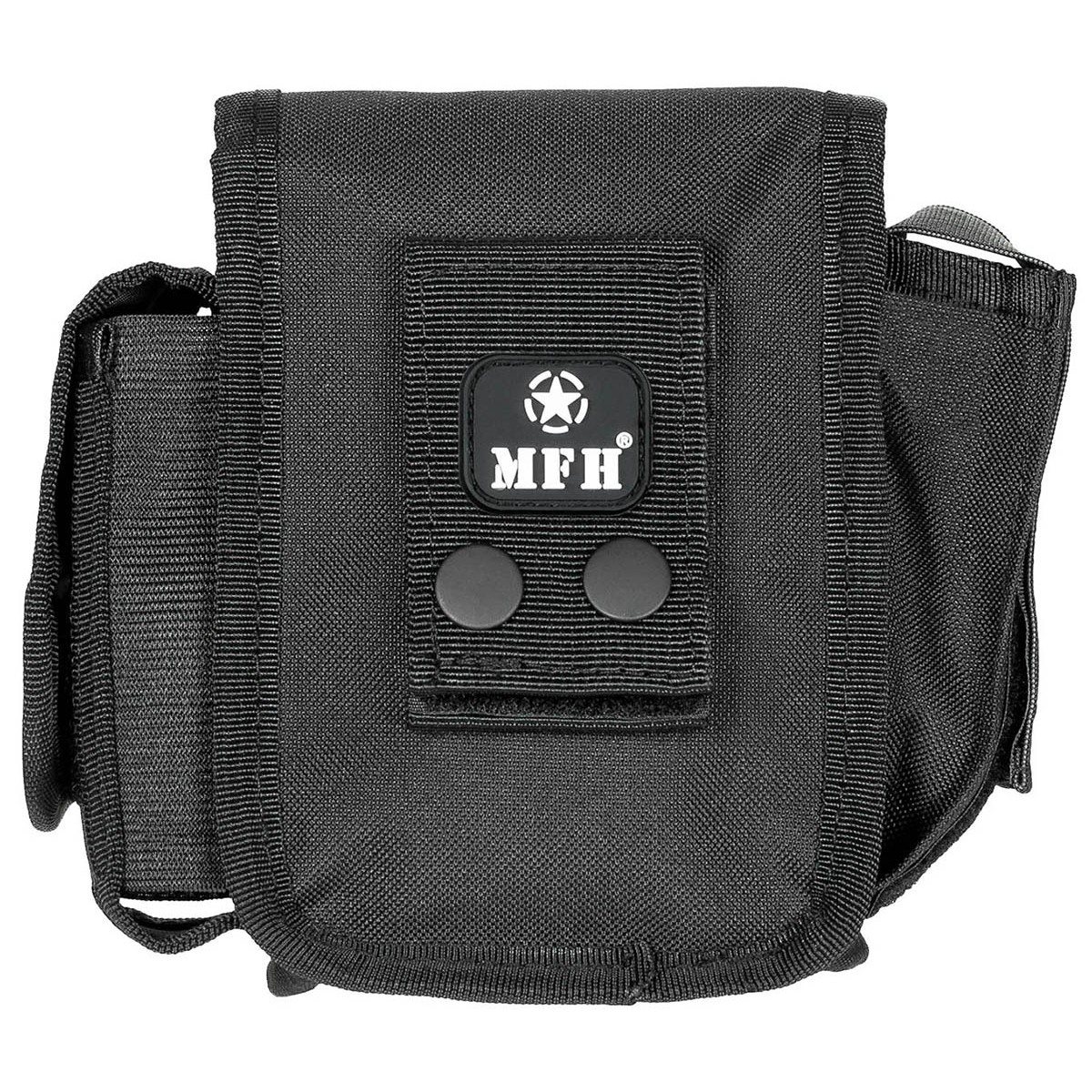 Poche principale avec fermeture velcro. Petite poche zippée. Deux petites poches à l'intérieur. Deux poches latérales avec fermeture velcro. Dimensions : 11 cm x 19 cm. Plus d'informations