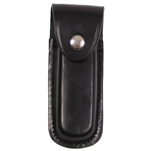 Étui en cuir pour couteau, fermeture à bouton-pression, fentes à l'arrière pour fixation à la ceinture (pour ceintures jusqu'à 6 cm).