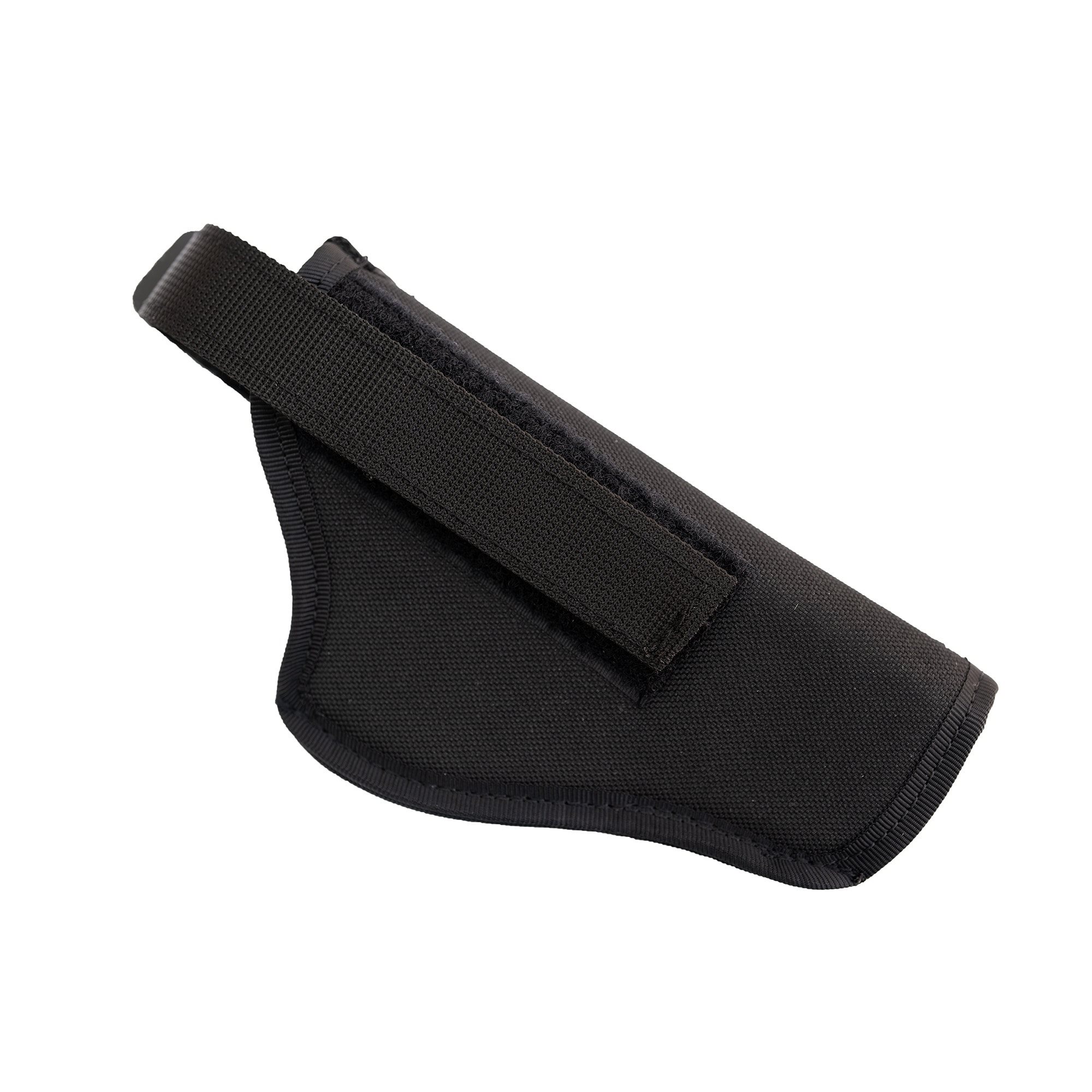 Étui latéral extérieur pour ceinture, pour droitiers, de la marque DASTA. Peut être utilisé pour le port dissimulé ou apparent d'une arme de poing courte. L'étui se fixe à la ceinture à l'aide d'une boucle en acier de 5 cm de large. Une sangle en deux parties avec bouton-pression permet de maintenir l'arme dans l'étui. La longueur de la sangle peut être ajustée à l'aide d'une bande Velcro en fonction de l'arme. Une sangle correctement ajustée permet de la détacher rapidement avec le pouce de la main qui tire tout en conservant une bonne prise sur la crosse de l'arme. L'étui est fabriqué en nylon et doublé d'un tissu doux pour éviter de rayer la surface de l'arme.