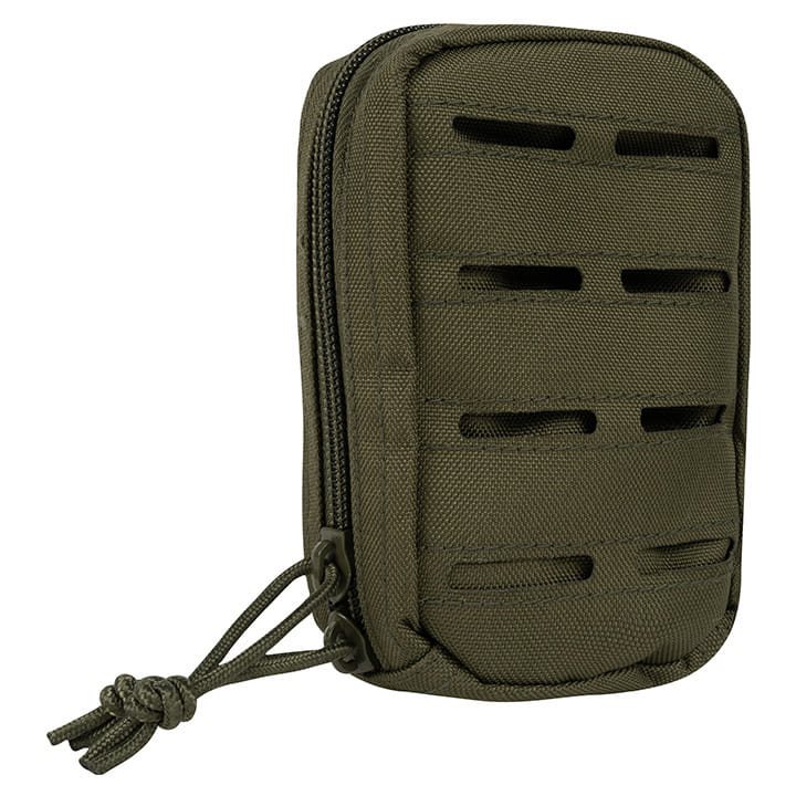 Étui utilitaire compact, avec fixation MOLLE découpée au laser sur le devant. Convient par exemple pour transporter un appareil photo, un portefeuille ou des clés.