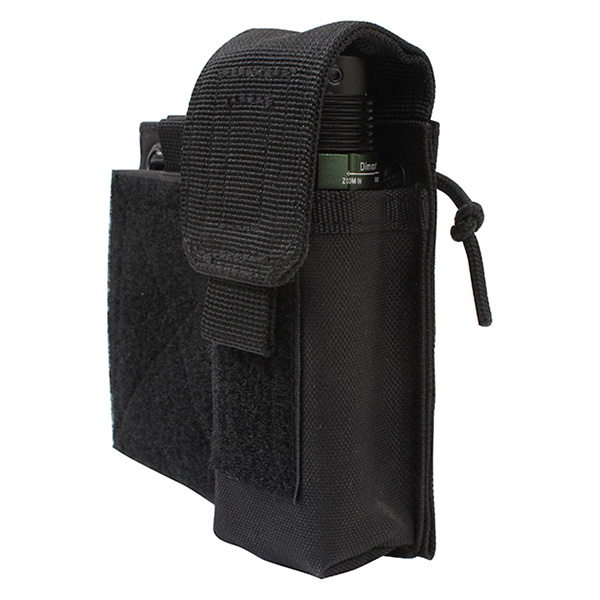 Étui pratique avec attaches MOLLE et deux poches séparées.