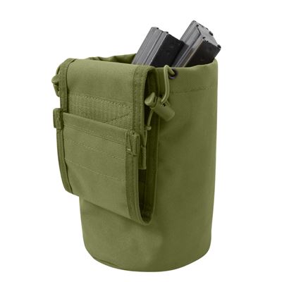 Étui pliable/enroulable pour chargeurs vides - éjecteur. Le bord supérieur peut être serré à l'aide d'un cordon élastique et fermé par un rabat à velcro. Sangles MOLLE pour fixation à l'équipement.