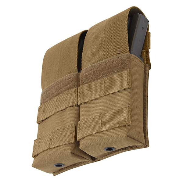 Étui pour deux chargeurs M16, avec rembourrage intérieur en plastique pour une meilleure stabilité des chargeurs. Dimensions : 15 x 11 cm (taille des poches), 15 x 14 cm (étui complet).