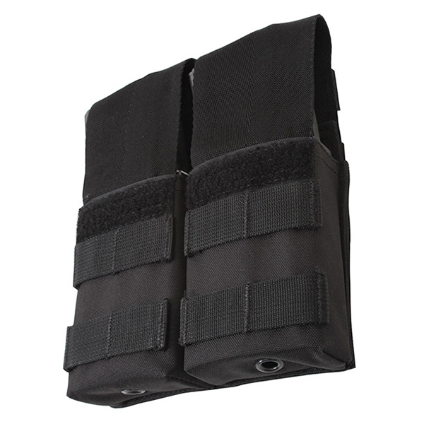 Étui pour deux chargeurs M16, avec rembourrage en plastique à l'intérieur pour une meilleure stabilité des chargeurs. Dimensions : 15 x 11 cm (taille des poches), 15 x 14 cm (étui complet).