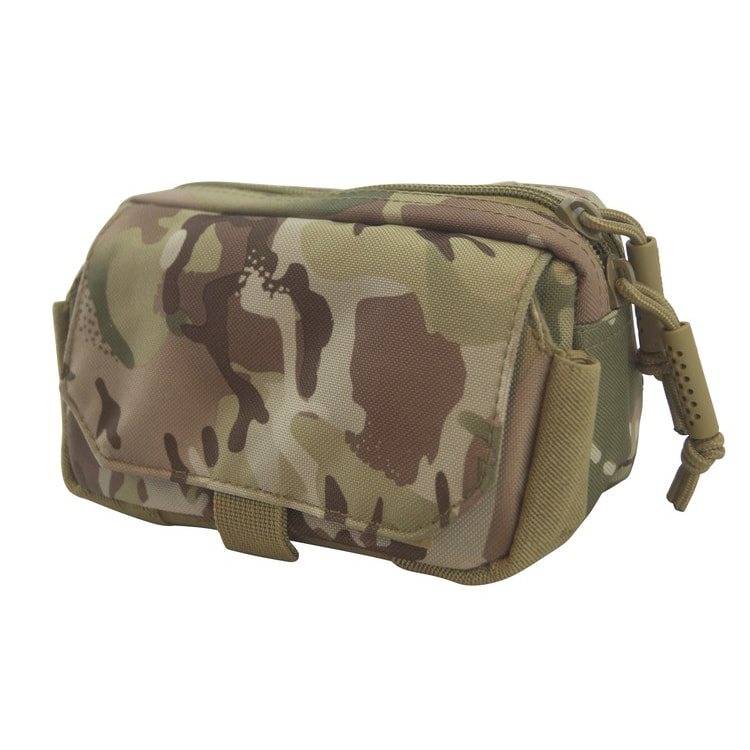Étui pratique conçu pour ranger votre téléphone ou tout autre équipement de taille similaire. L'intérieur de l'étui est doté d'une doublure en polaire douce qui empêche d'endommager les parties les plus sensibles de l'équipement rangé. L'étui est divisé en deux compartiments de rangement, le compartiment avant est recouvert d'un rabat à fermeture velcro, le compartiment arrière est accessible grâce à une fermeture éclair à double sens équipée de solides tirettes. La partie arrière de l'étui est compatible MOLLE/PALS, ce qui permet de le fixer facilement et rapidement à toute une série d'équipements compatibles.
