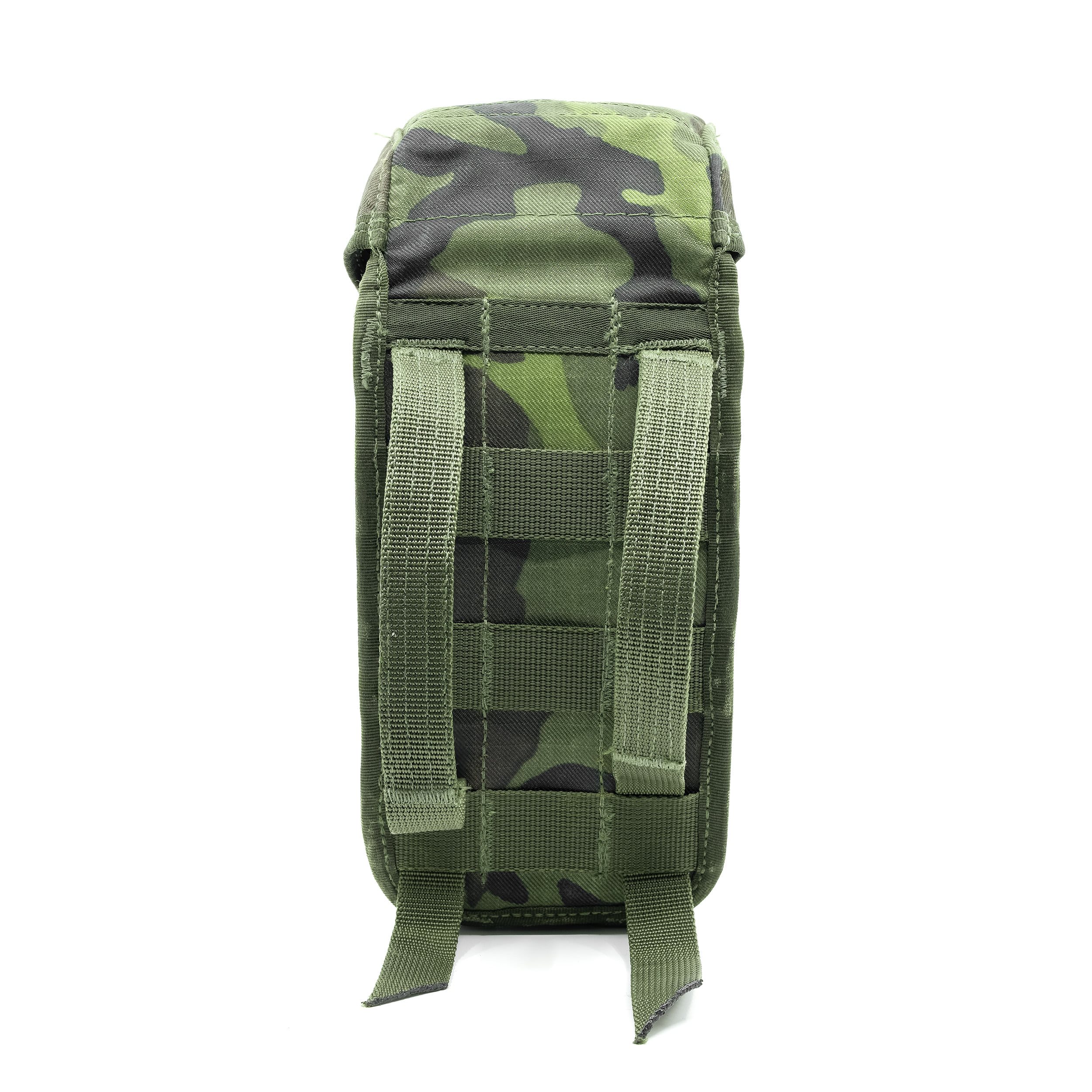 Sacoche pour trois chargeurs de fusil automatique SA58. Les chargeurs sont placés côte à côte à la verticale. Fermeture par rabat avec boucle Fastex. Fixation à l'aide du système MOLLE NPP-2006. D'occasion - provenant de la liquidation de l'armée tchèque, en bon état, non endommagé.
