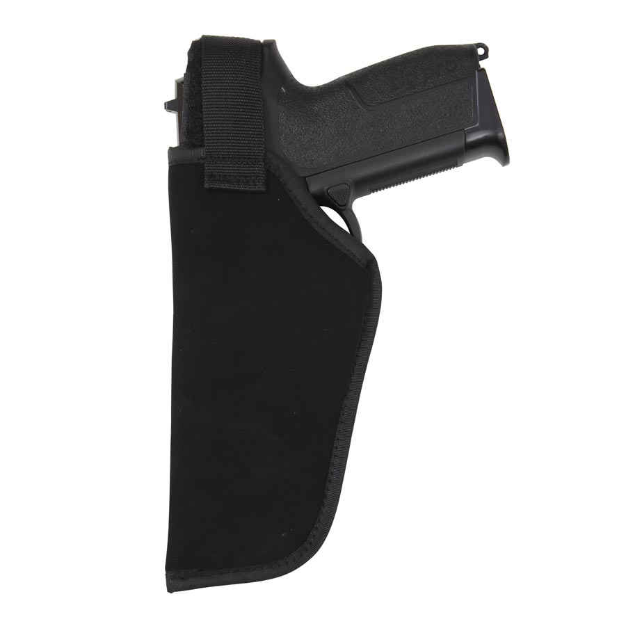 Étui conçu pour être porté sous un pantalon - il se fixe au pantalon ou à la ceinture à l'aide d'un clip en plastique renforcé. La sangle supérieure permettant de maintenir l'arme est réglable grâce à une bande Velcro.