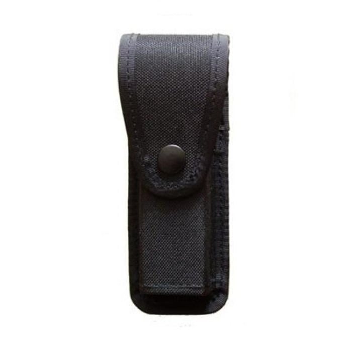 Grand étui refermable pour chargeur. Convient aux chargeurs d'armes de plus grande taille telles que les CZ 75 / 85 et Glock 17. Fermeture à bouton-pression, possibilité de fixation à la ceinture.