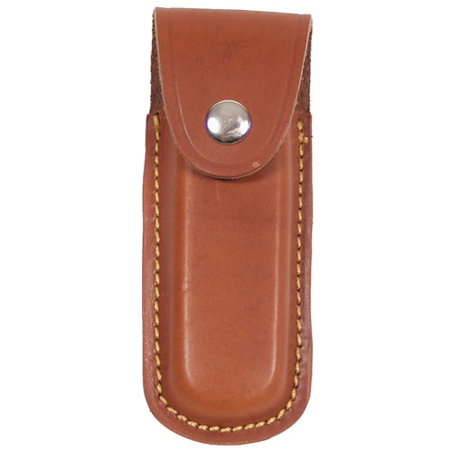 Étui en cuir pour couteau, fermeture à bouton-pression, fentes à l'arrière pour fixation à la ceinture (pour ceintures jusqu'à 6 cm).