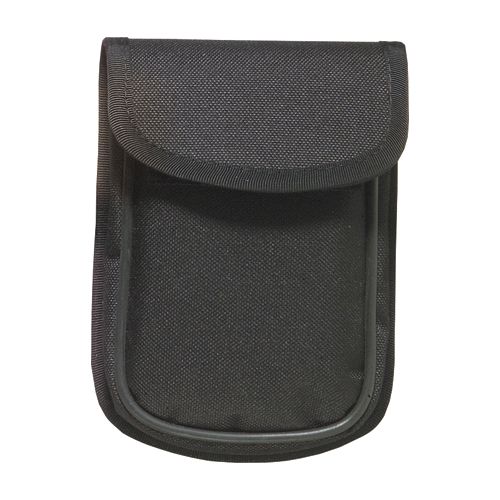 Pochette pour documents pouvant être attachée à la ceinture. Fermeture à velcro. Dimensions : 10 x 14 cm.