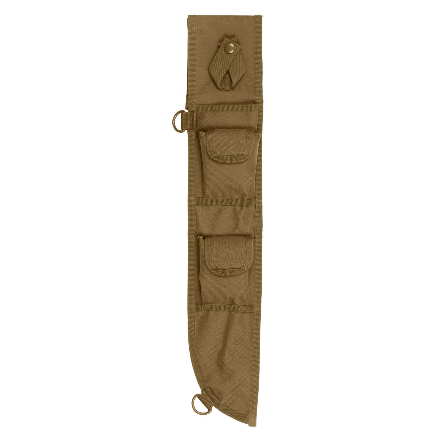 Étui conçu pour une machette classique de 18 pouces (45 cm), fabriqué en polyester résistant et doté d'un insert en plastique qui protège l'étui contre les coupures. L'étui peut être fixé à l'aide de 4 sangles MOLLE (2 sangles dans 2 rangées) ou accroché à l'aide de 2 anneaux en D, ou encore attaché à la ceinture. À l'avant de l'étui se trouvent 2 poches à fermeture velcro dans lesquelles vous pouvez ranger des outils de coupe. rangées) ou suspendu à l'aide de 2 anneaux en D, ou encore attaché à la ceinture. À l'avant du fourreau, il y a 2 poches à fermeture velcro dans lesquelles vous pouvez ranger de petits équipements - un briquet, des allumettes, une boussole, un allume-feu, un aiguiseur, etc. Longueur totale - environ 58 cm
