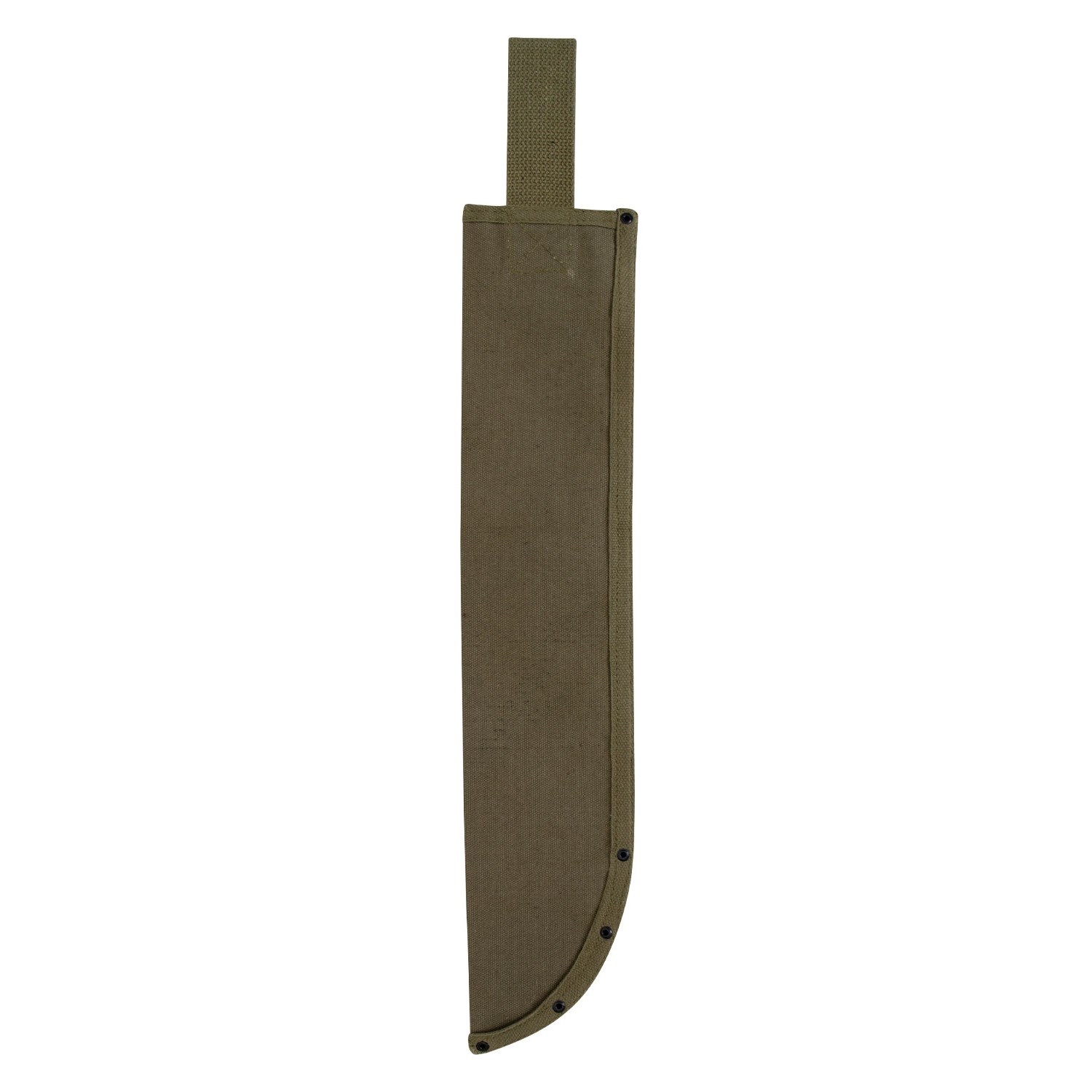Étui en toile pour machette, avec boucle pour ceinture à l'extrémité.