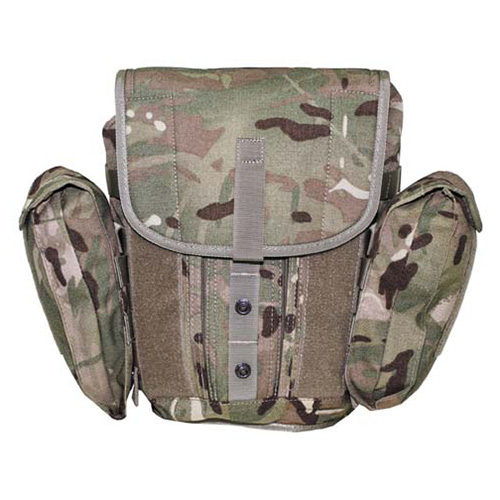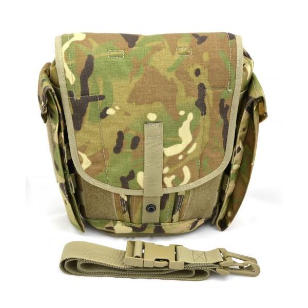Étui pour masque en camouflage britannique MTP. Dimensions : environ 31 x 32 x 14 cm.