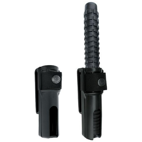 Retrait très rapide du bâton d'une seule main, car grâce à l'ouverture automatique de l'étui après avoir détachée la sangle en nylon, il n'y a pratiquement aucun frottement. Possibilité d'ajuster la taille de l'ouverture pour la ceinture en découpant les cloisons et en inclinant ainsi l'étui vers l'avant ou vers l'arrière selon les besoins. Lorsque la sangle en nylon est détachée, il est possible de ranger le bâton ouvert. Brevet européen accordé (EP1832834).