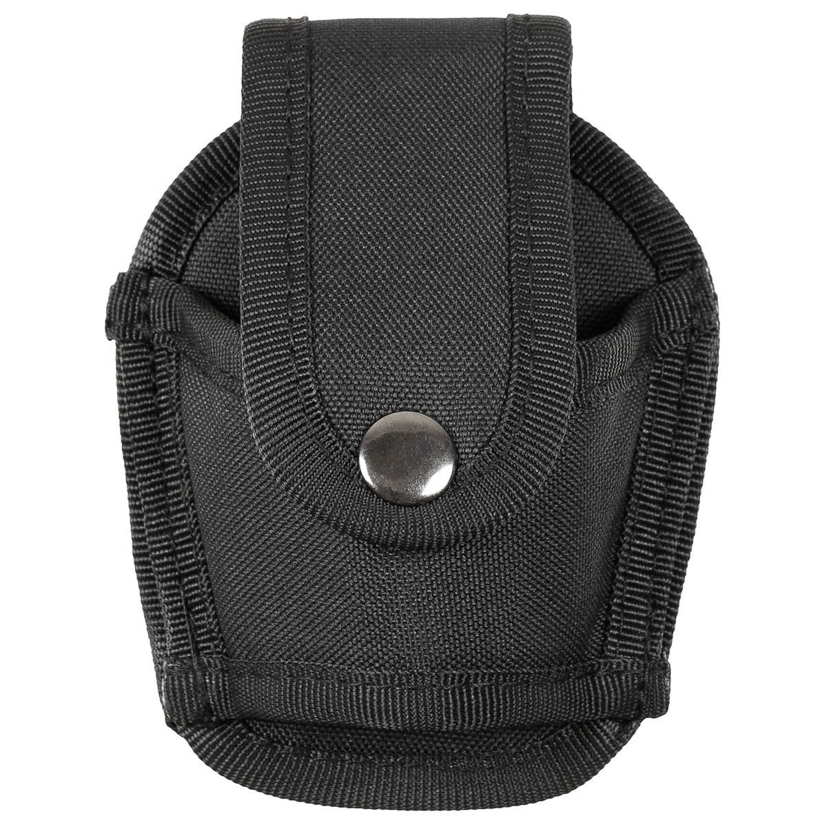 Étui en nylon pour menottes à fixer à la ceinture. Fermeture à bouton-pression. Plus d'informations
