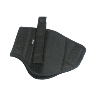 Étui de ceinture extérieur de la marque DASTA. Conçu comme réversible (réglable) pour les droitiers et les gauchers. Peut être utilisé pour le port dissimulé ou apparent d'une arme de poing courte. L'étui est fixé à la ceinture à l'aide de deux boucles à enfiler d'environ 6 cm de large. Une sangle en deux parties avec un bouton-pression sert à maintenir l'arme dans l'étui. La sangle peut être ajustée en longueur et en largeur à l'aide d'une bande Velcro en fonction de l'arme ou des préférences de l'utilisateur. Une fois correctement ajustée, la sangle peut être détachée assez rapidement avec le pouce de la main qui tire, tout en conservant une bonne prise sur la crosse de l'arme. L'étui est fabriqué en nylon et doublé d'un tissu doux pour éviter de rayer la surface de l'arme.